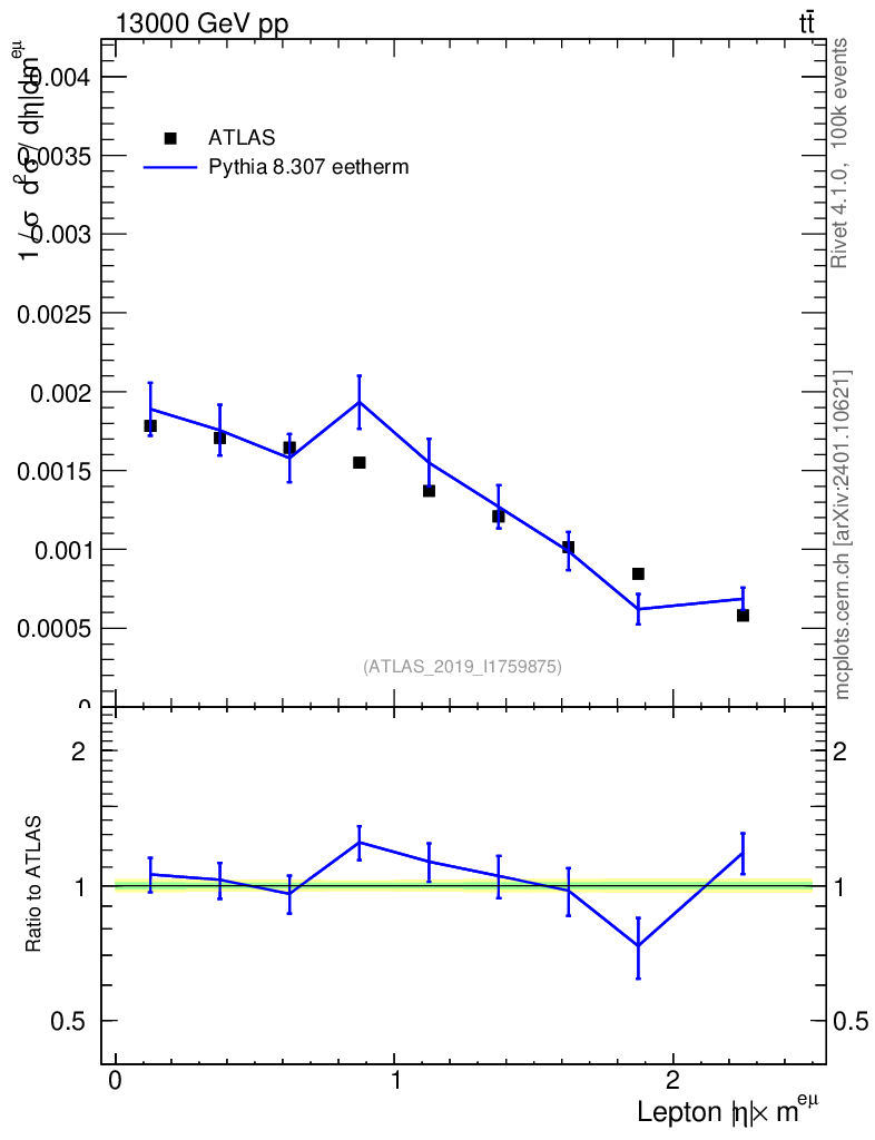 Lines: data, pythia8 8.307 eetherm |