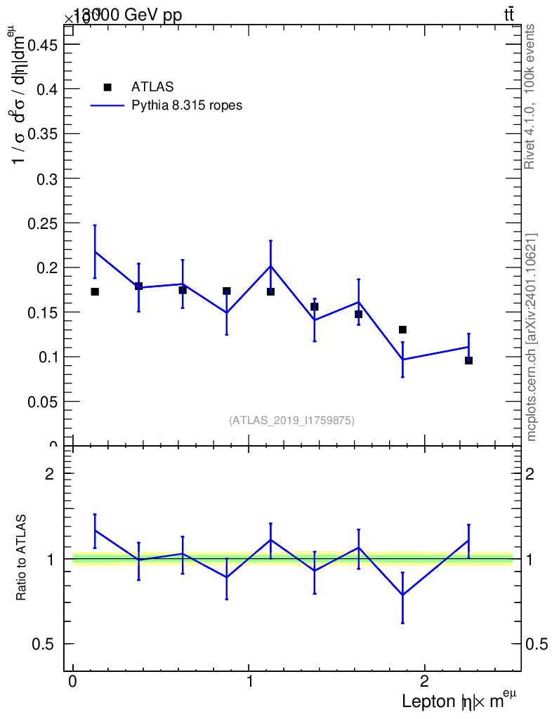 Lines: data, pythia8 8.315 ropes |