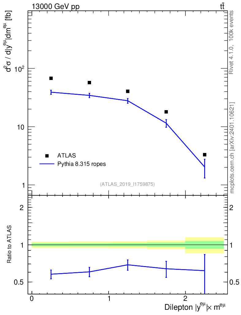 Lines: data, pythia8 8.315 ropes |