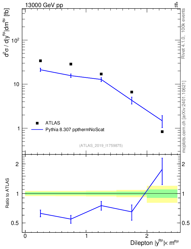 Lines: data, pythia8 8.307 ppthermNoScat |
