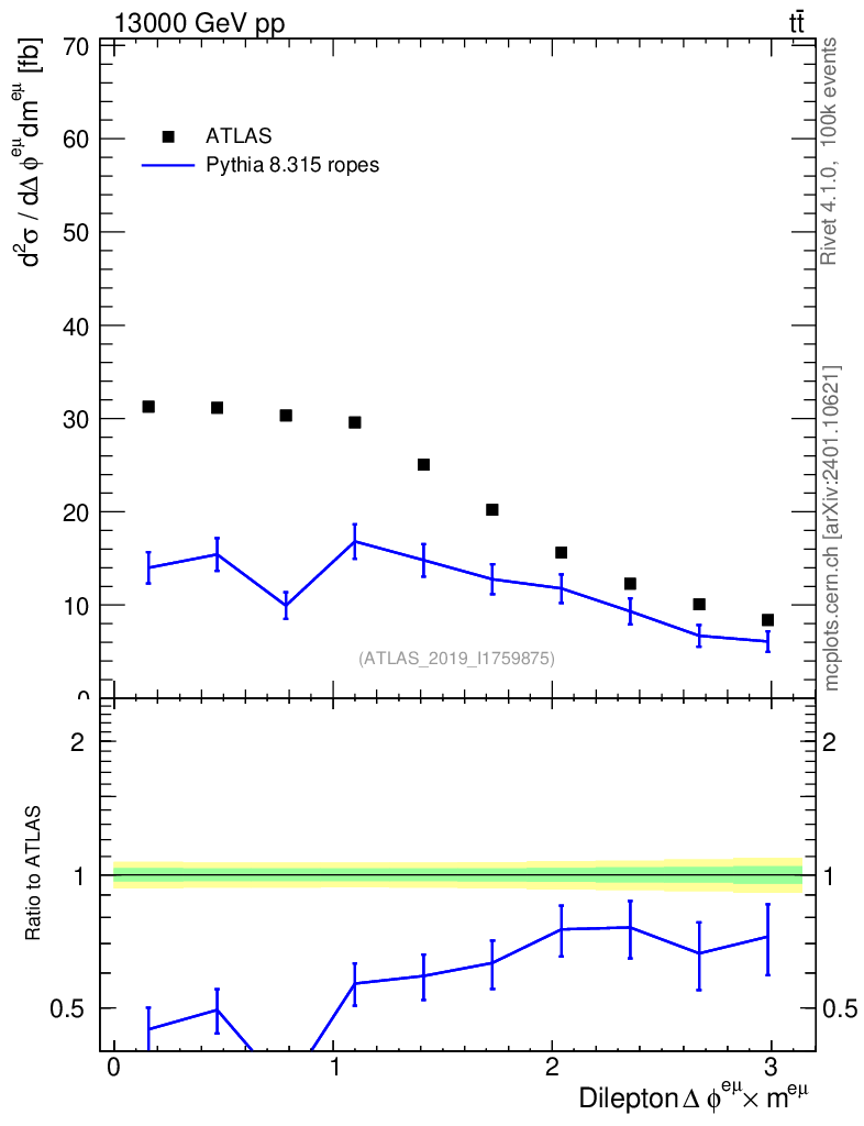Lines: data, pythia8 8.315 ropes |