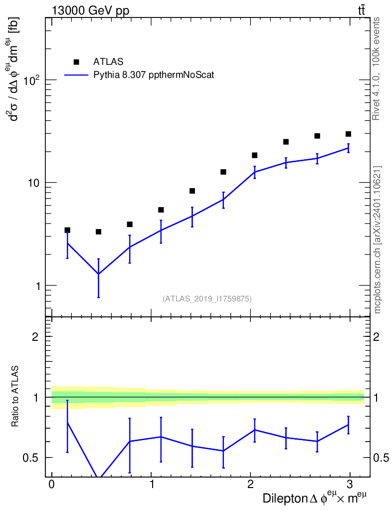 Lines: data, pythia8 8.307 ppthermNoScat |