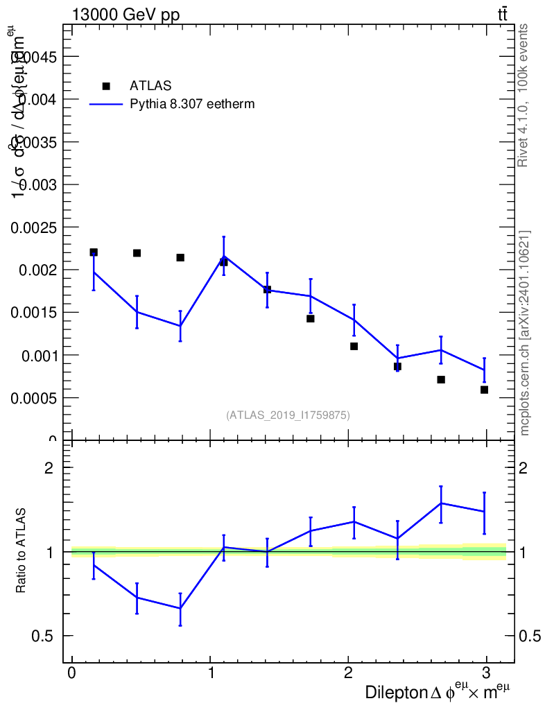 Lines: data, pythia8 8.307 eetherm |