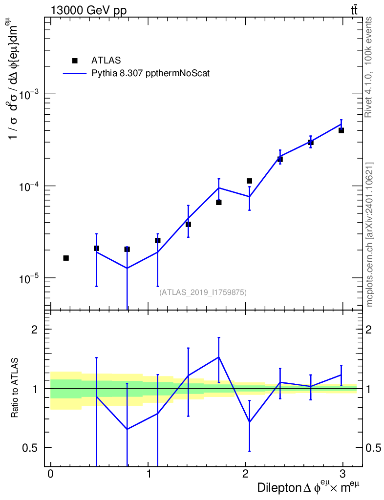 Lines: data, pythia8 8.307 ppthermNoScat |