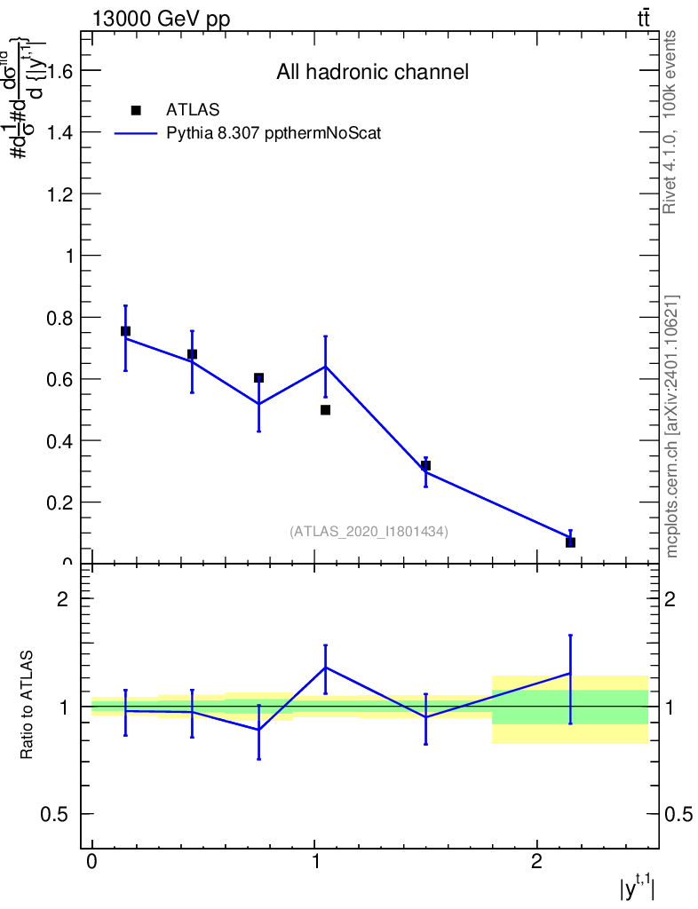 Lines: data, pythia8 8.307 ppthermNoScat |
