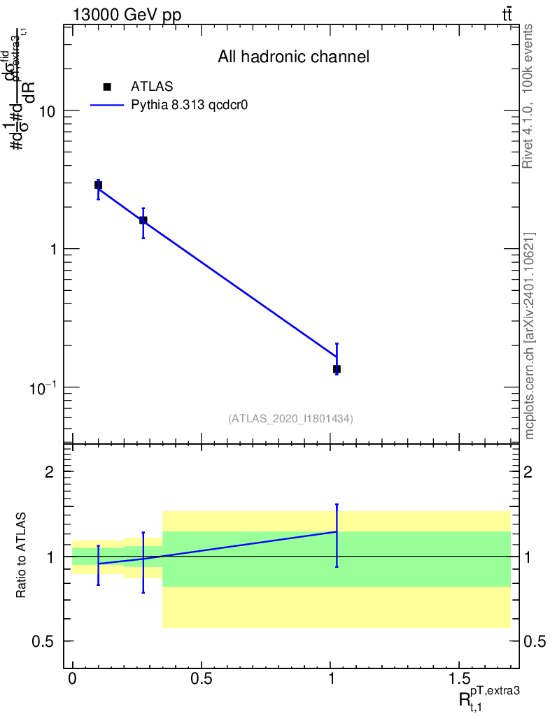 Lines: data, pythia8 8.313 qcdcr0 |