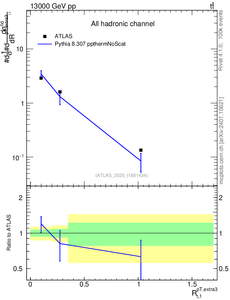 Lines: data, pythia8 8.307 ppthermNoScat |