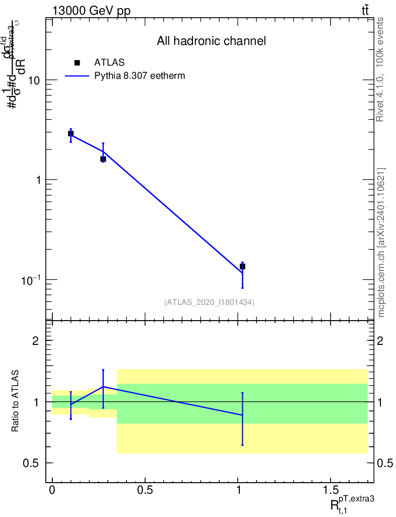 Lines: data, pythia8 8.307 eetherm |