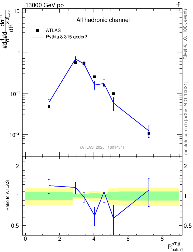 Lines: data, pythia8 8.315 qcdcr2 |