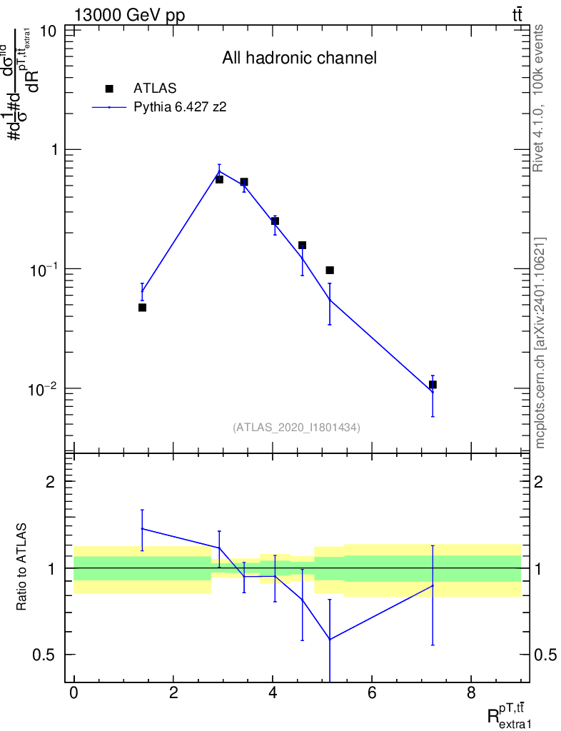 Lines: data, pythia6 6.427 z2 |