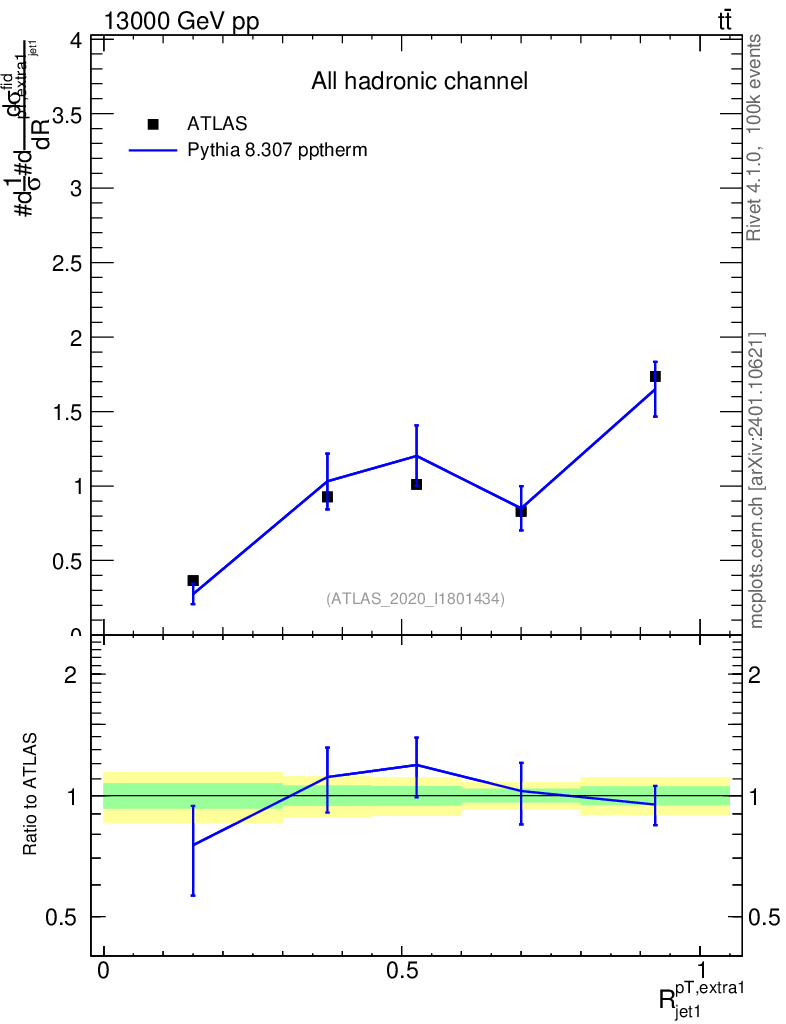 Lines: data, pythia8 8.307 pptherm |
