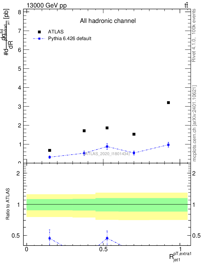 Lines: data, pythia6 6.426 default |