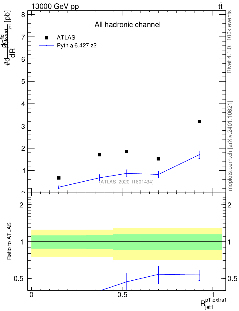 Lines: data, pythia6 6.427 z2 |