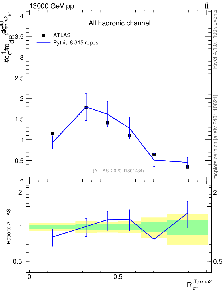 Lines: data, pythia8 8.315 ropes |