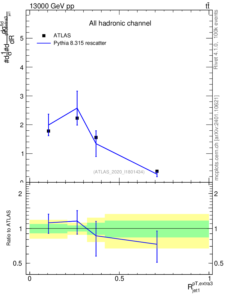 Lines: data, pythia8 8.315 rescatter |