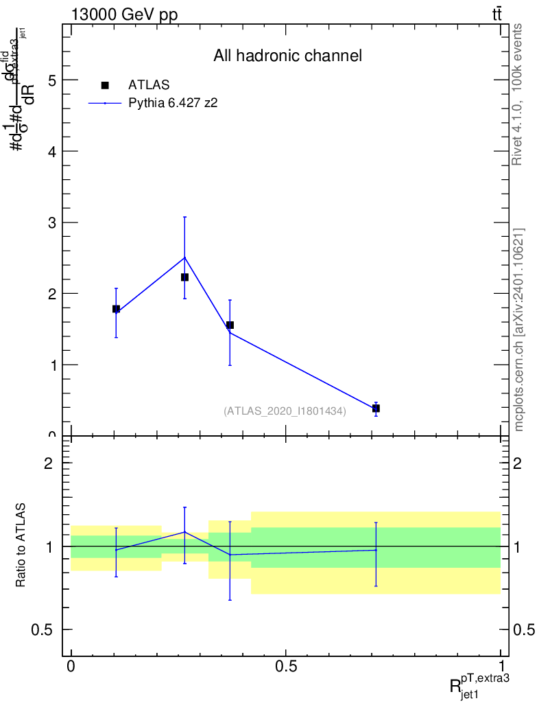 Lines: data, pythia6 6.427 z2 |