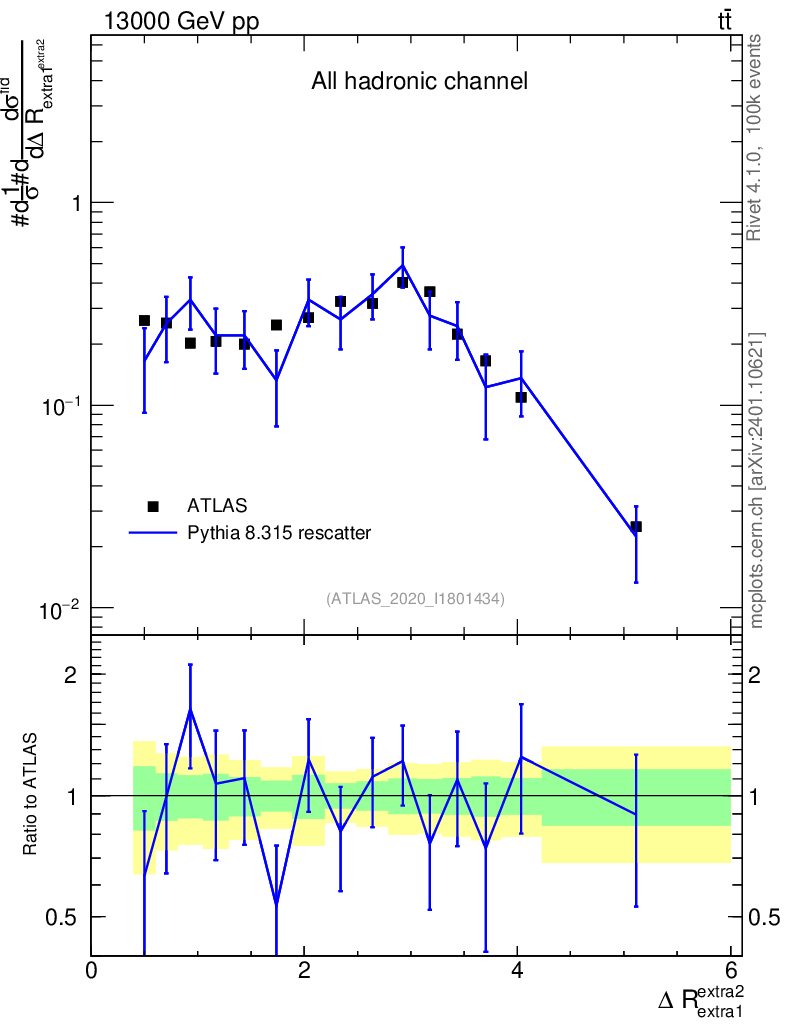 Lines: data, pythia8 8.315 rescatter |