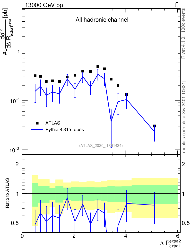 Lines: data, pythia8 8.315 ropes |