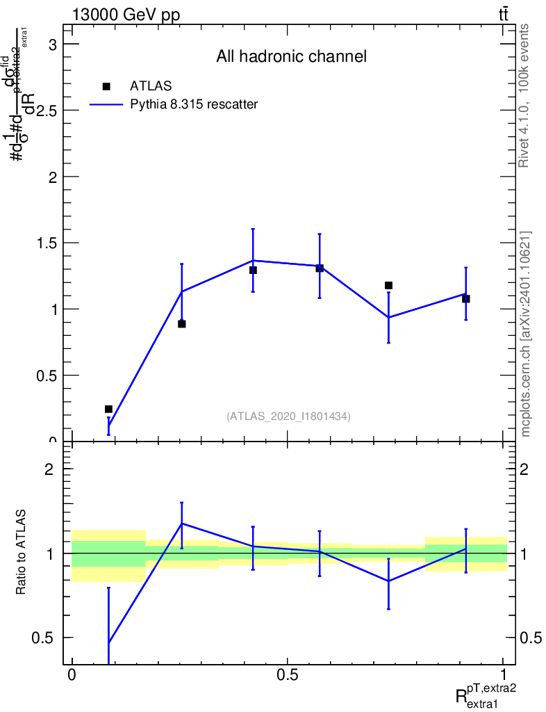 Lines: data, pythia8 8.315 rescatter |