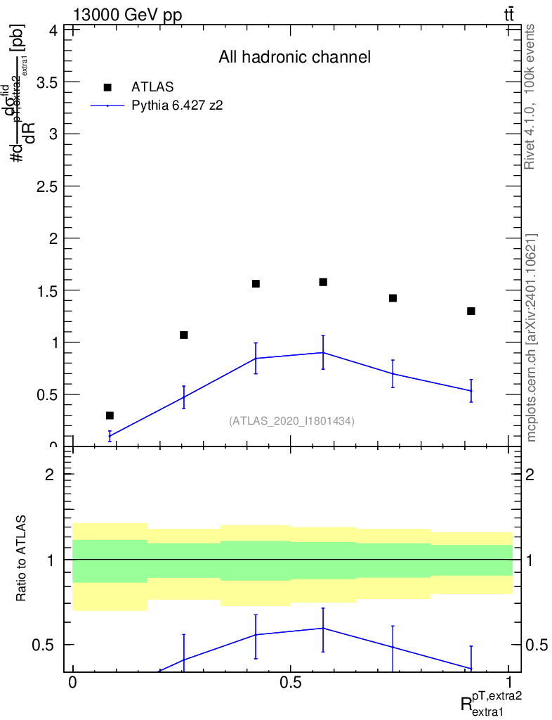 Lines: data, pythia6 6.427 z2 |