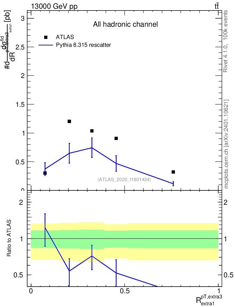 Lines: data, pythia8 8.315 rescatter |