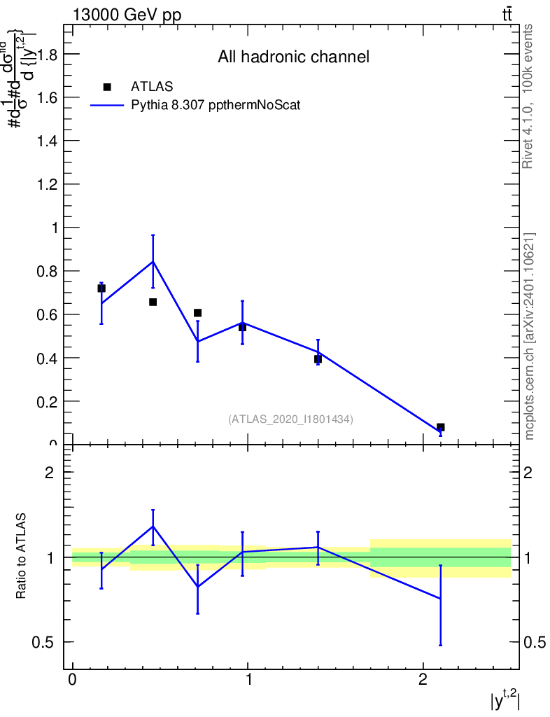 Lines: data, pythia8 8.307 ppthermNoScat |