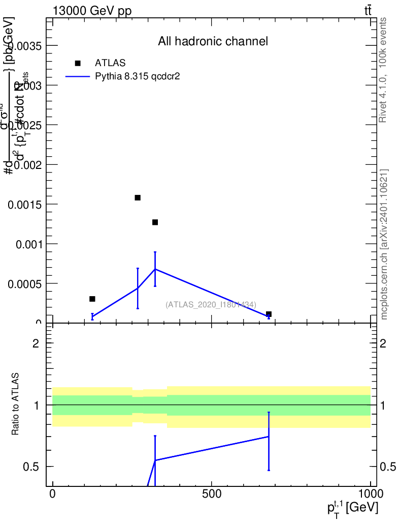 Lines: data, pythia8 8.315 qcdcr2 |