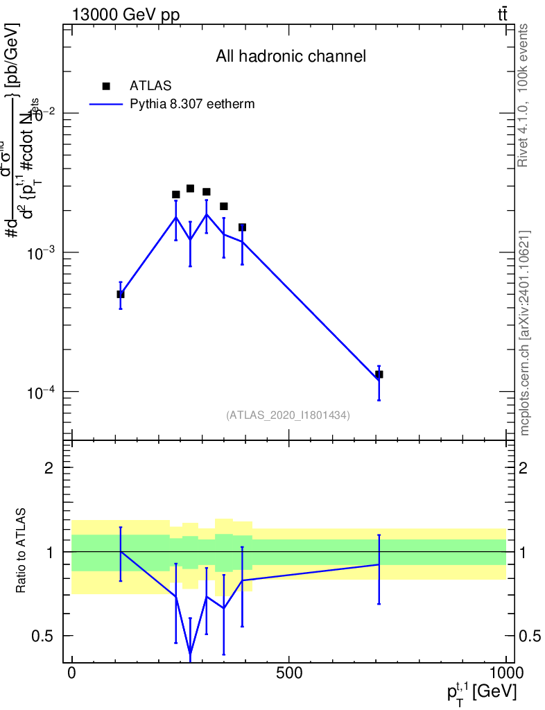 Lines: data, pythia8 8.307 eetherm |