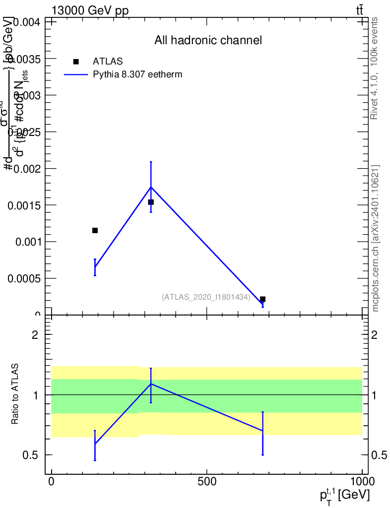 Lines: data, pythia8 8.307 eetherm |