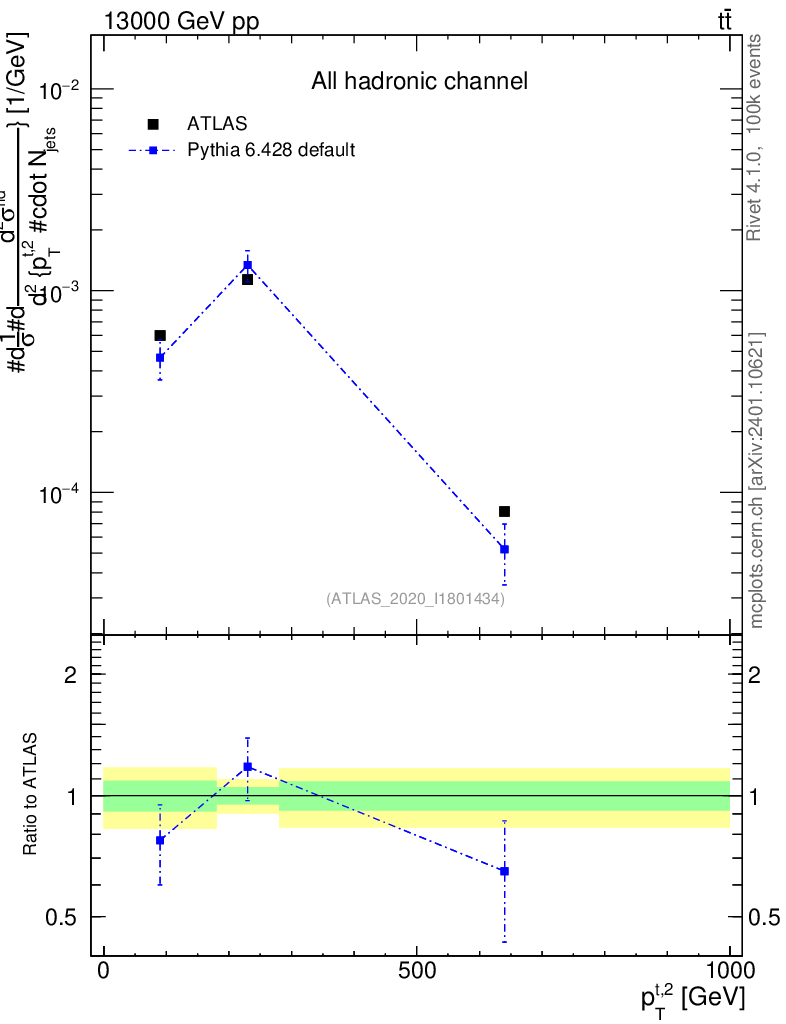 Lines: data, pythia6 6.428 default |