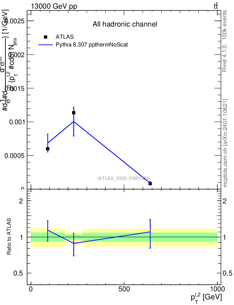 Lines: data, pythia8 8.307 ppthermNoScat |