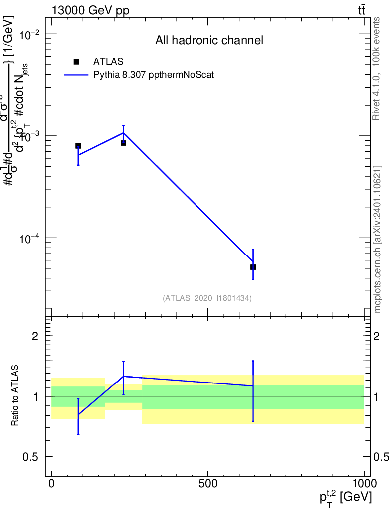 Lines: data, pythia8 8.307 ppthermNoScat |