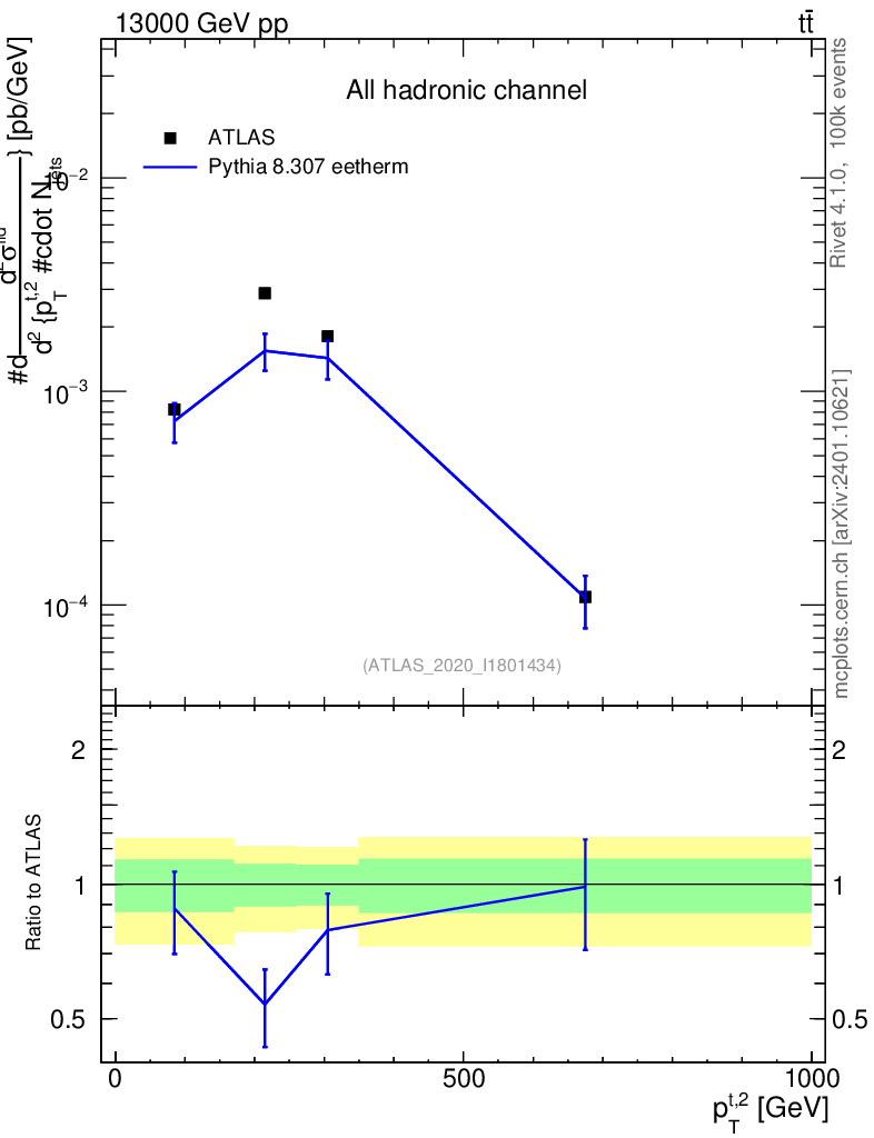 Lines: data, pythia8 8.307 eetherm |