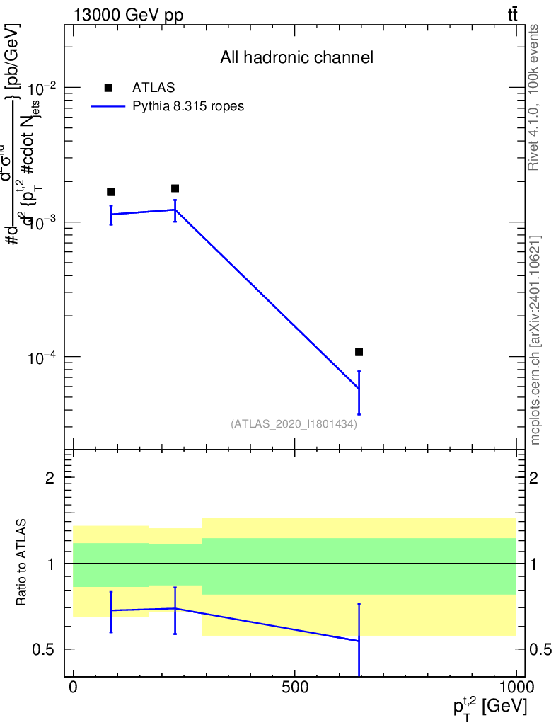Lines: data, pythia8 8.315 ropes |