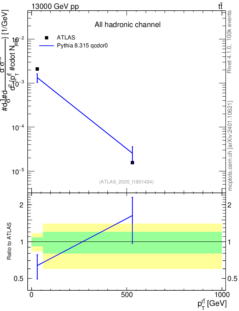 Lines: data, pythia8 8.315 qcdcr0 |