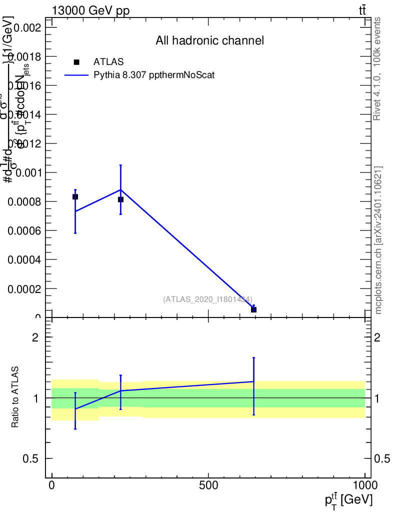 Lines: data, pythia8 8.307 ppthermNoScat |