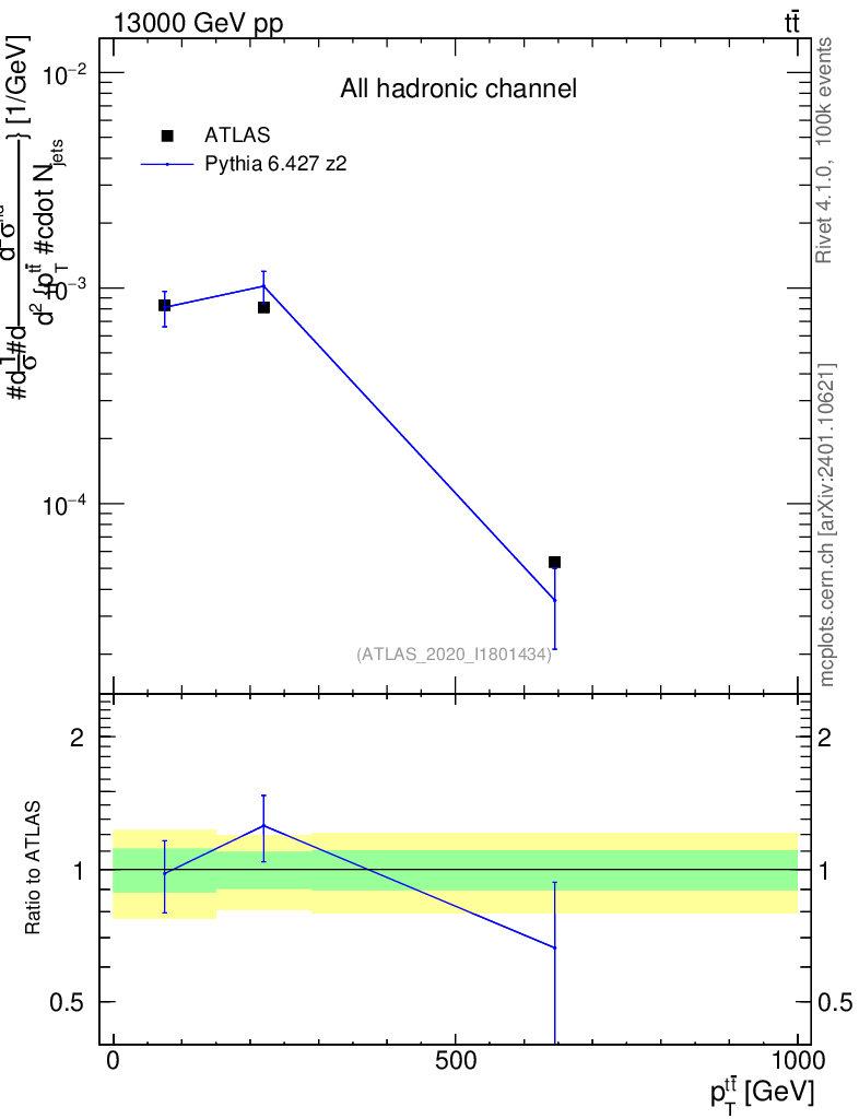 Lines: data, pythia6 6.427 z2 |