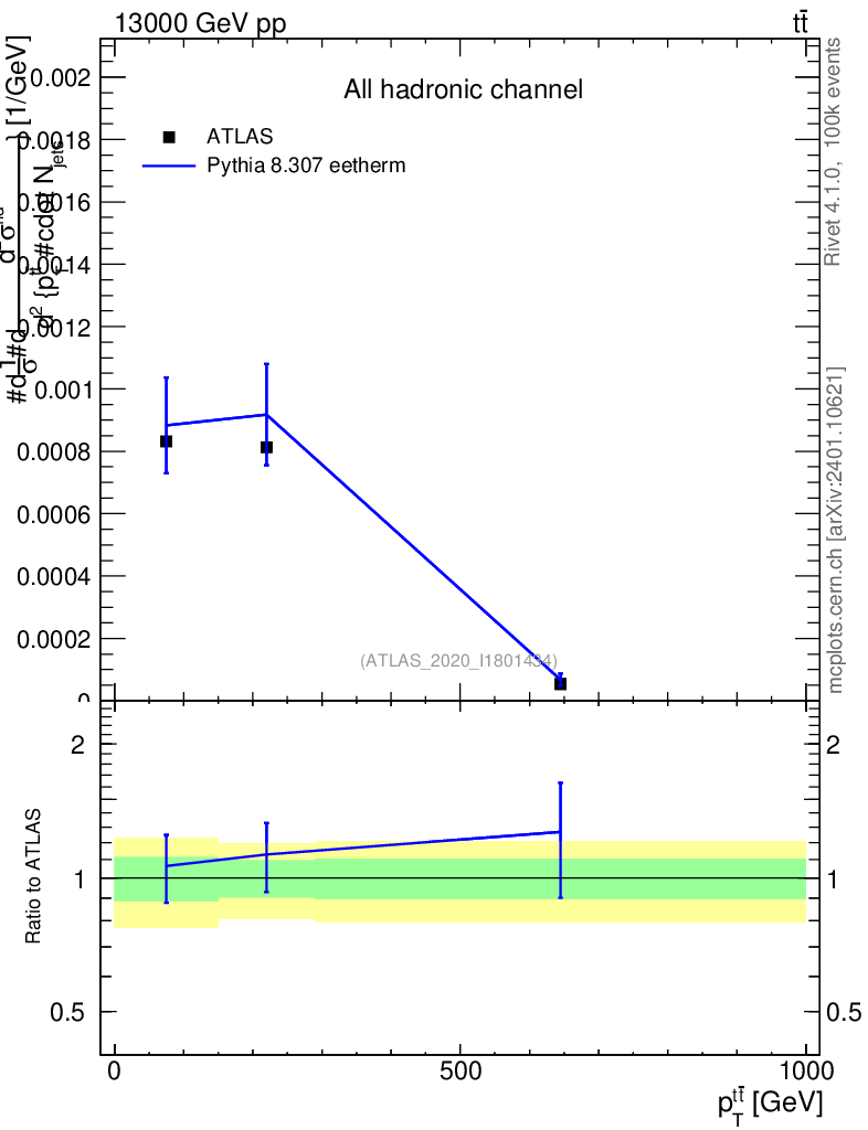 Lines: data, pythia8 8.307 eetherm |