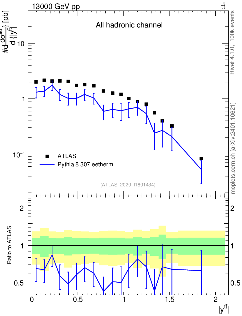 Lines: data, pythia8 8.307 eetherm |