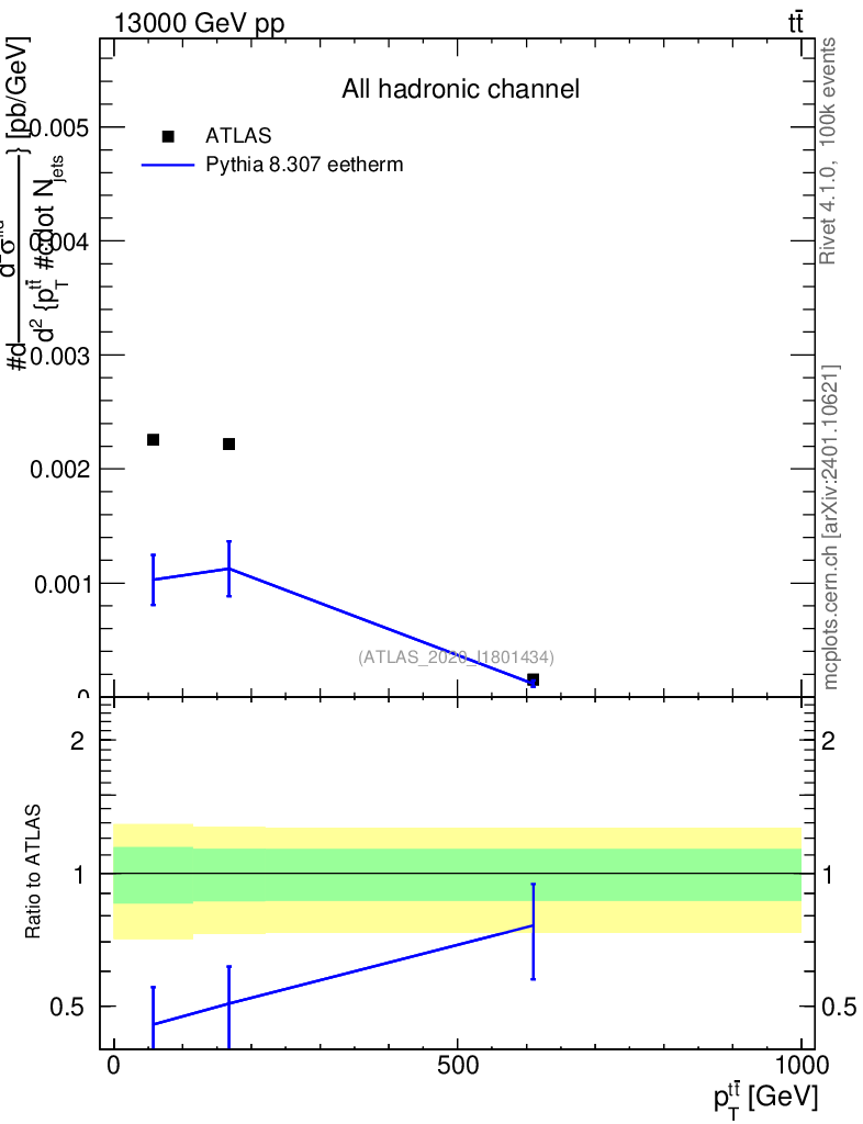 Lines: data, pythia8 8.307 eetherm |