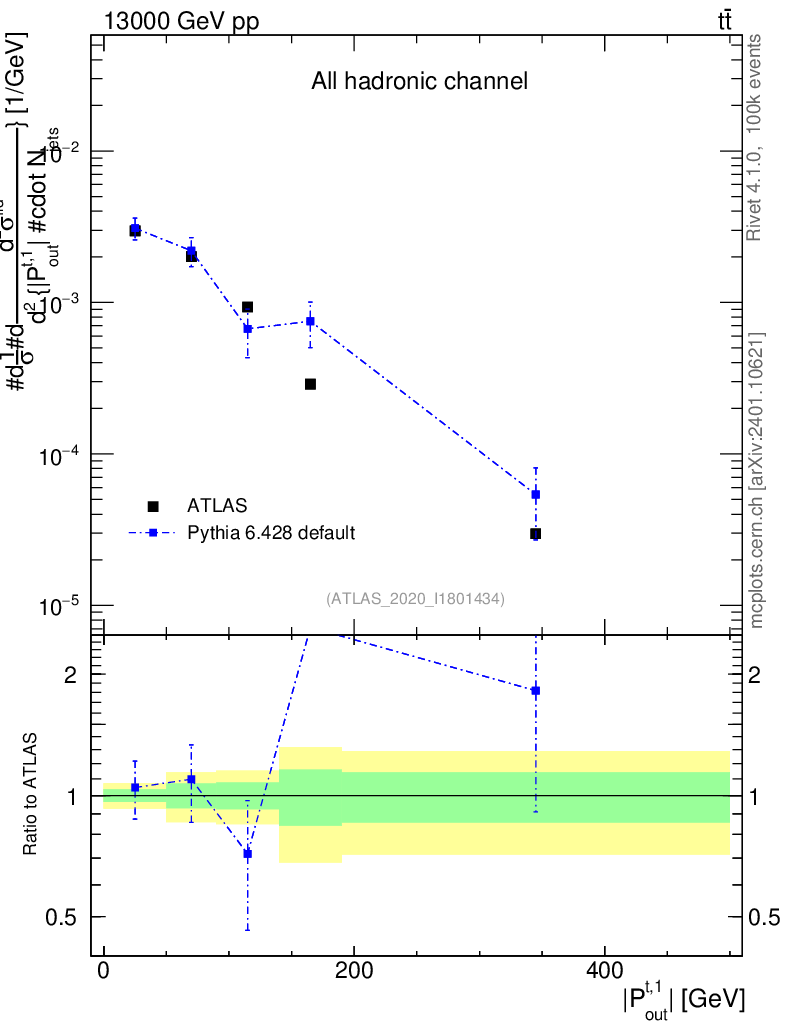 Lines: data, pythia6 6.428 default |
