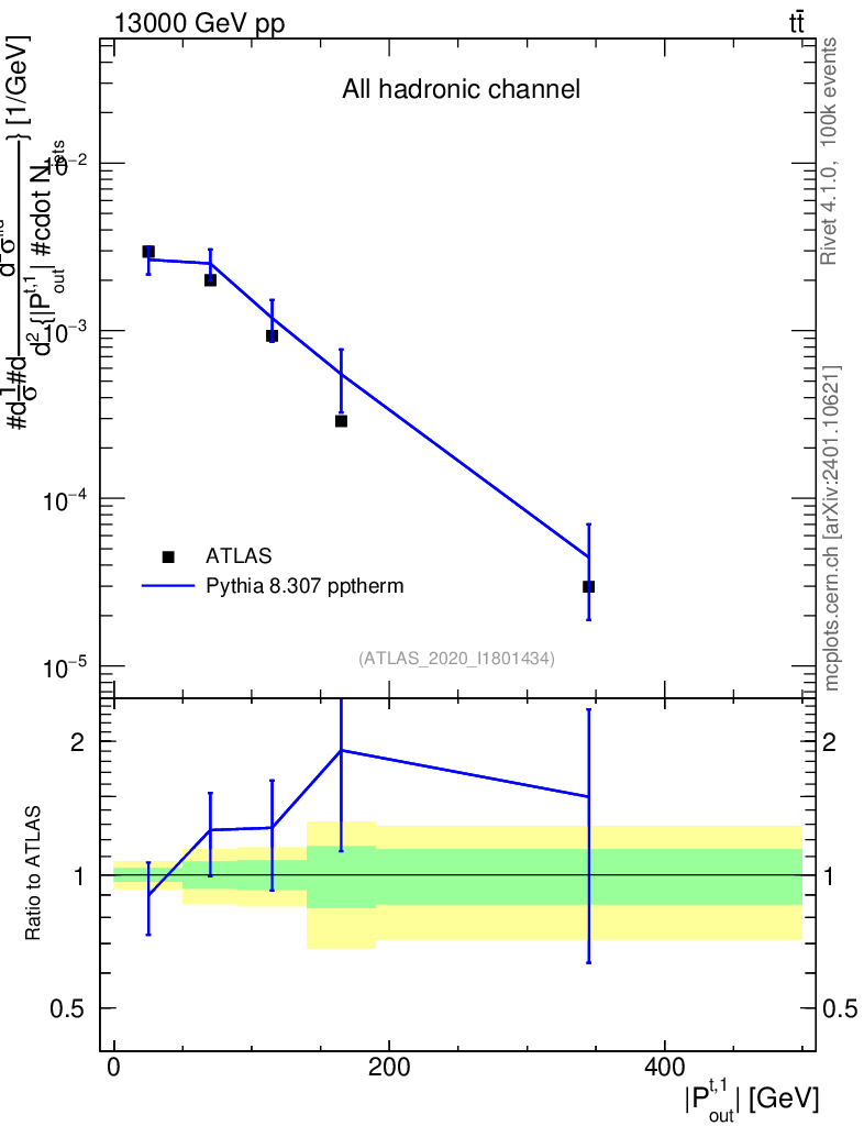 Lines: data, pythia8 8.307 pptherm |