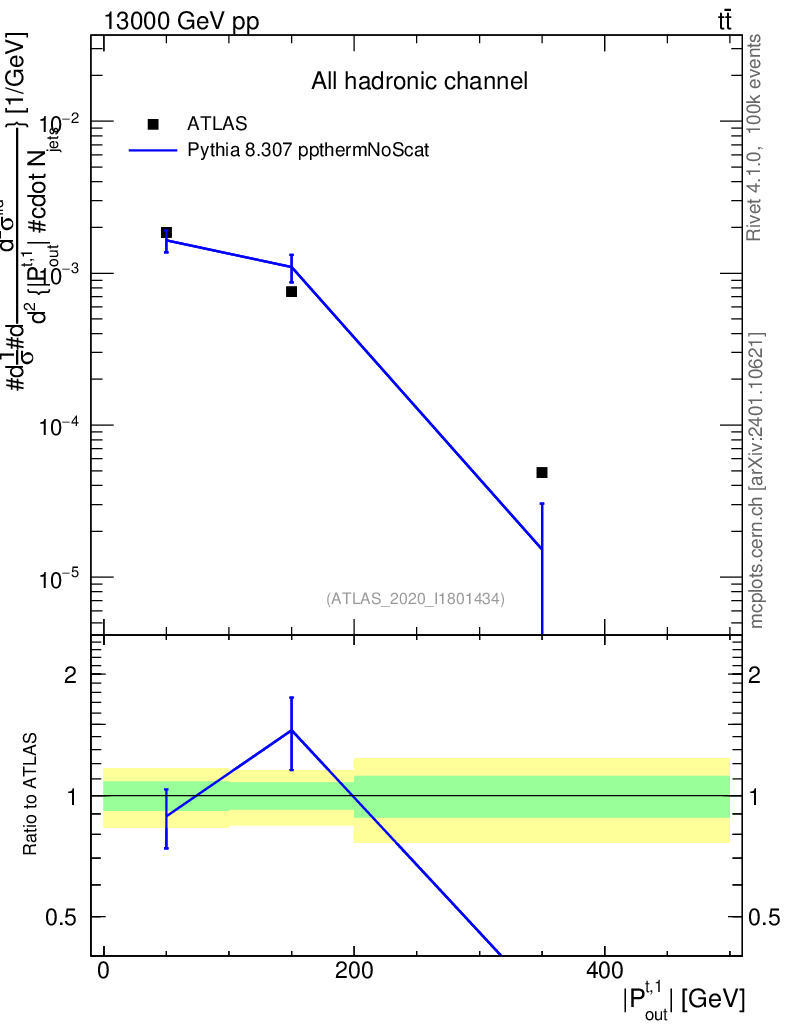 Lines: data, pythia8 8.307 ppthermNoScat |