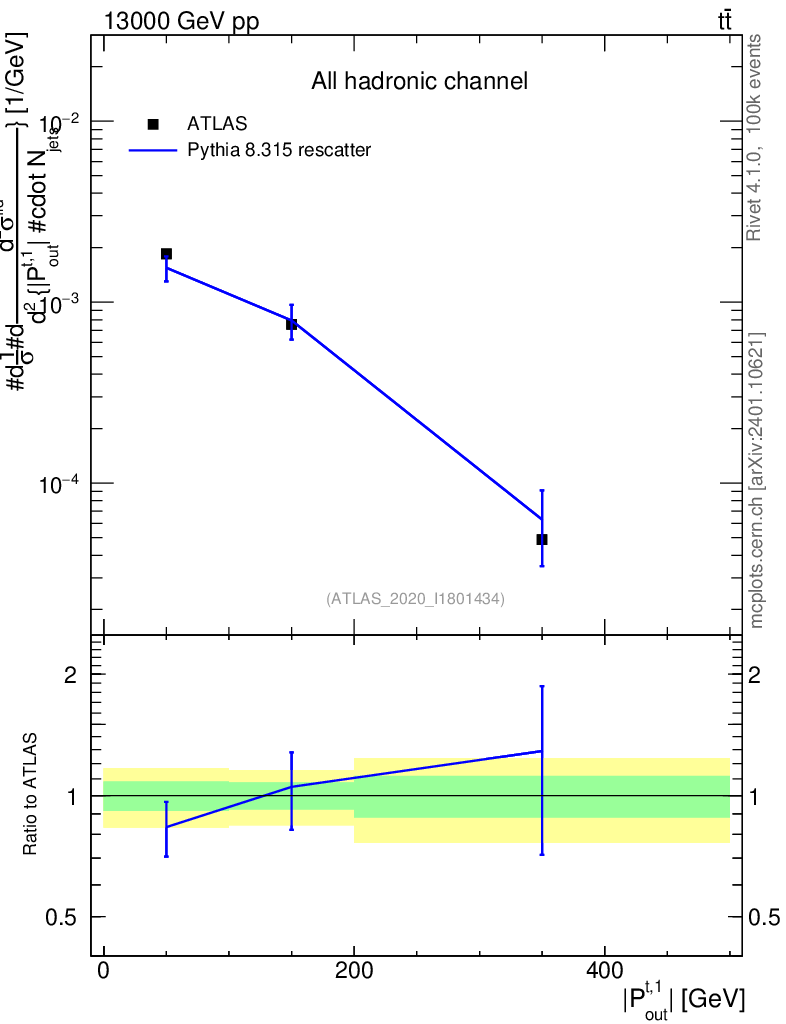 Lines: data, pythia8 8.315 rescatter |