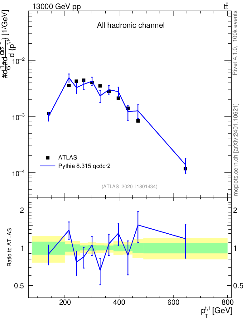 Lines: data, pythia8 8.315 qcdcr2 |