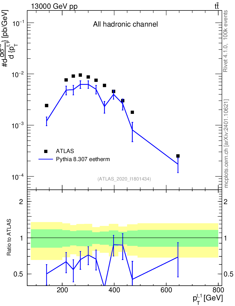 Lines: data, pythia8 8.307 eetherm |
