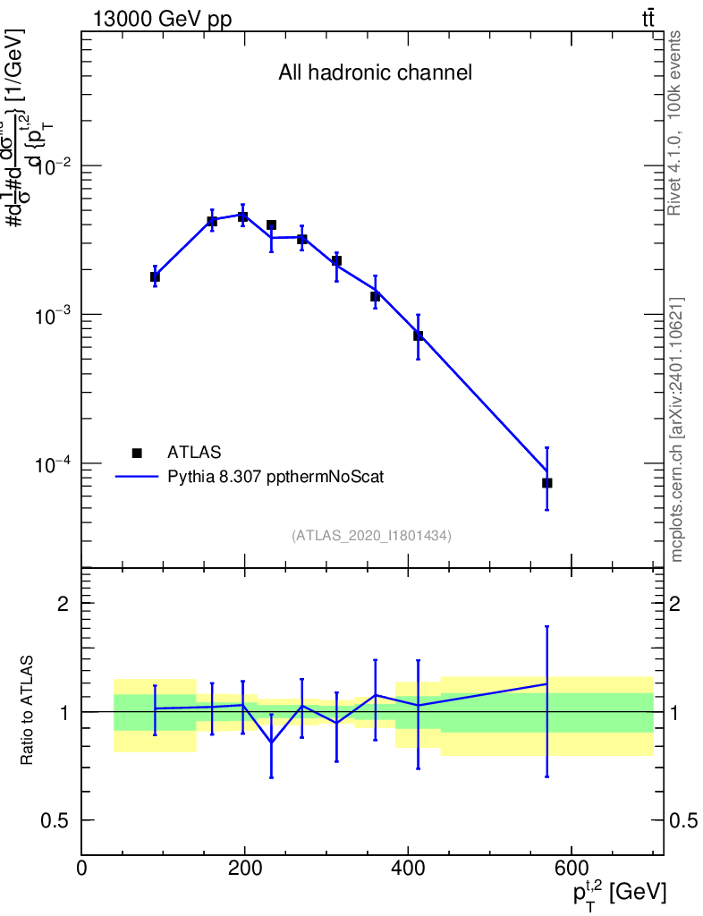 Lines: data, pythia8 8.307 ppthermNoScat |