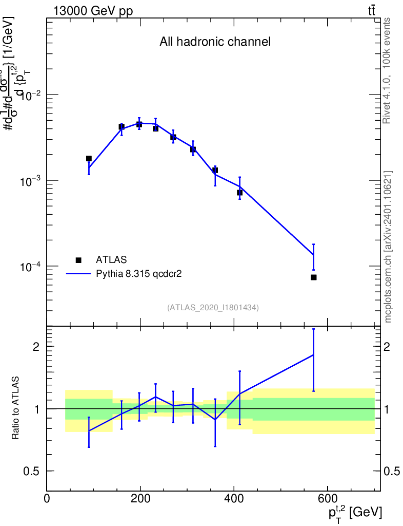 Lines: data, pythia8 8.315 qcdcr2 |