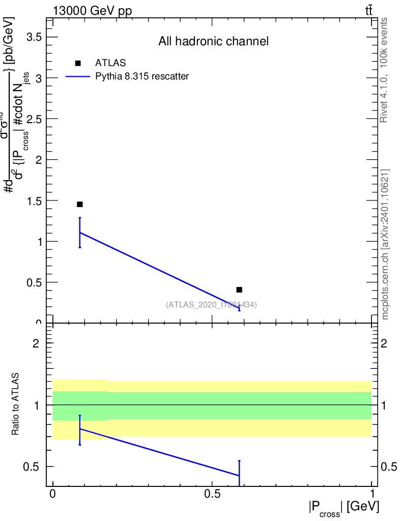 Lines: data, pythia8 8.315 rescatter |