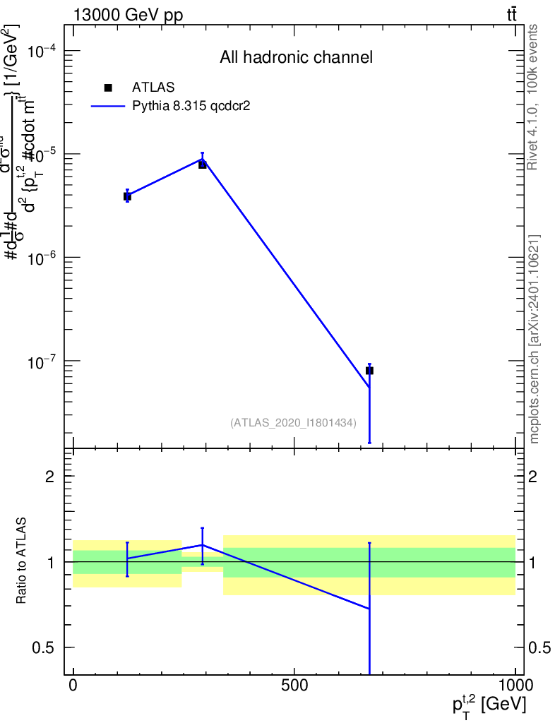 Lines: data, pythia8 8.315 qcdcr2 |
